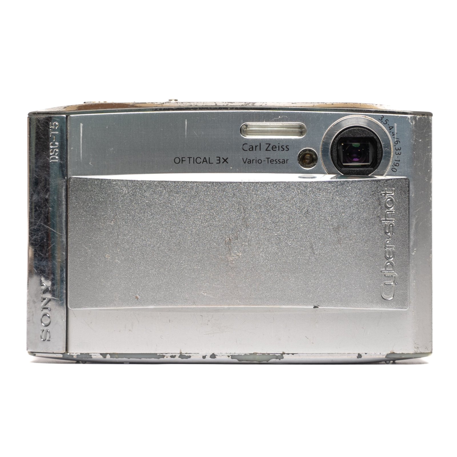 The Sony DSC-T5 is a 5.1MP slim digital camera with a 3x optical zoom Carl Zeiss lens and a stylish sliding front cover. Compact and lightweight, it’s perfect for travel, everyday snapshots, and collectors of vintage Sony Cyber-shot models. A fashionable choice for those who want a retro digital camera with personality.